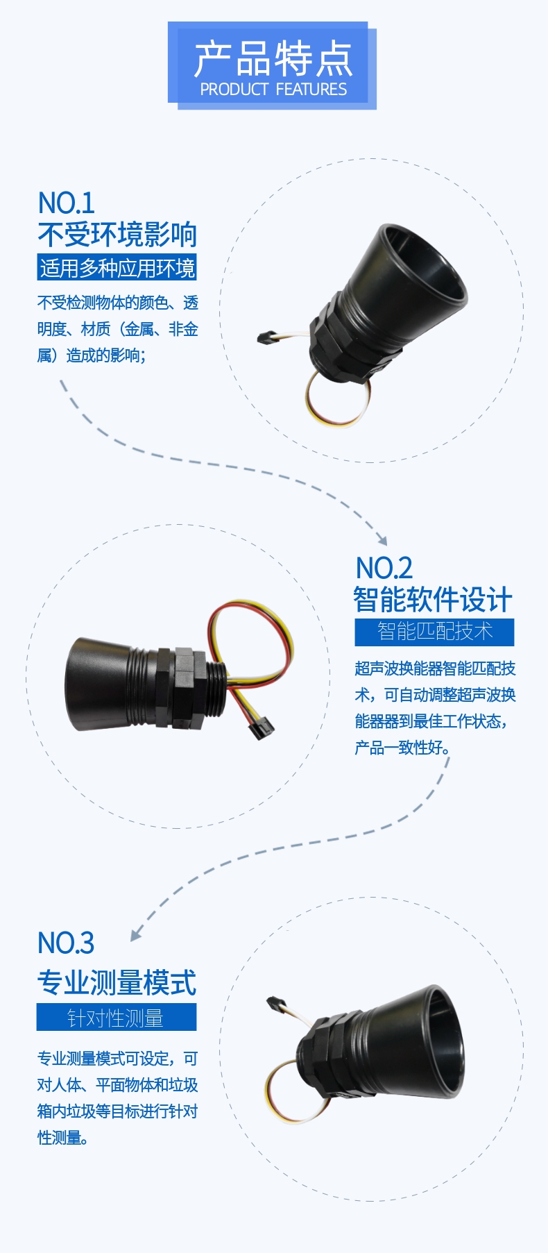 隨時間的推移,技術的沉淀,深圳市電應普科技有限公司結合沉淀10年超聲波應用開發(fā)經(jīng)驗與現(xiàn)代化先進的技術,研發(fā)出基于超聲波應用的智能垃圾檢測傳感器,在改善城市環(huán)境方面起到了非常重要作用。
