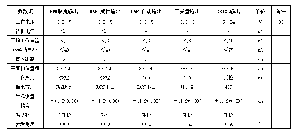 輸出方式:UART串口、PWM脈寬、RS485、IIC輸出