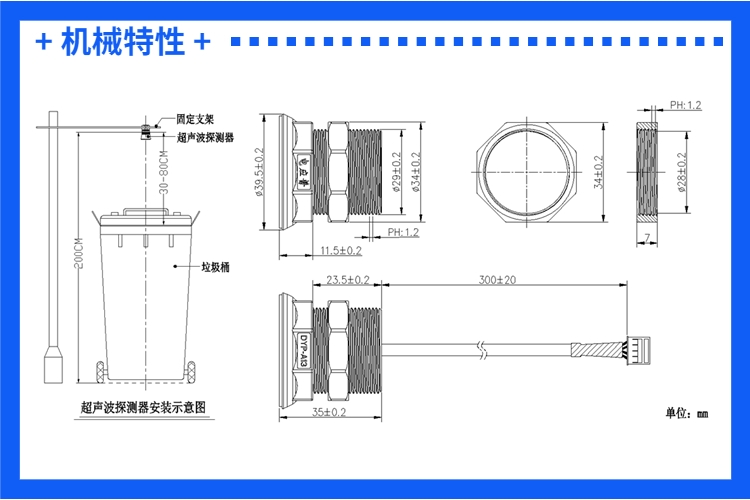 A13模組其特點優勢為高靈敏、角度小,即模組具備很強的偵查能力,在有效測量范圍內能識別聲波反射系數較小或聲波有效反射面積較小的物體,可適用于垃圾桶內的垃圾滿溢監