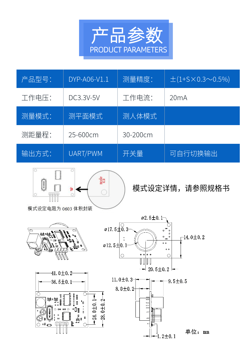 一體化超聲波測(cè)距傳感器 DYP-A06-V1.1