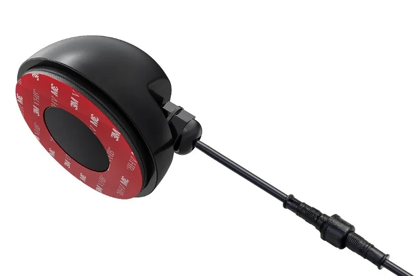 該模組是針對 IBC 噸桶液位檢測應用而設計的一款非接觸式毫米波傳感器,底部有雙面膠設計,針對常見塑料容器可通過雙面膠粘貼安裝在容器頂部,無需開孔,直接穿透非金屬外殼從上往下實現液位檢測。