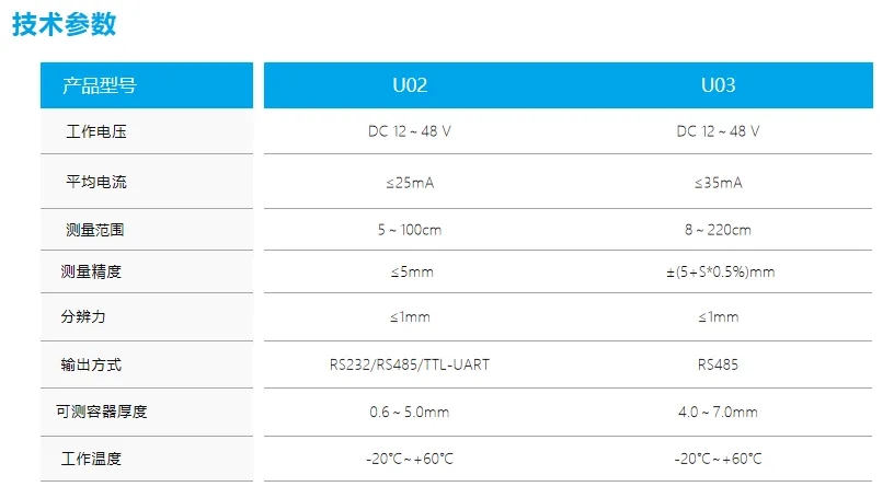 具有 IP67防護等級、盲區小、精度高,安裝簡易等優點,支持離線式遠程升級。支持 modbus協議,可以進行相應參數修改。