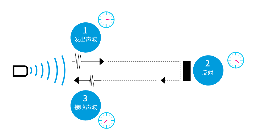 其工作原理(如下圖三所示),它采用了超聲波測距技術,通過發射特定波長的信號并接收其反射回來的時間差或相位差,計算出目標的距離(即身高)。